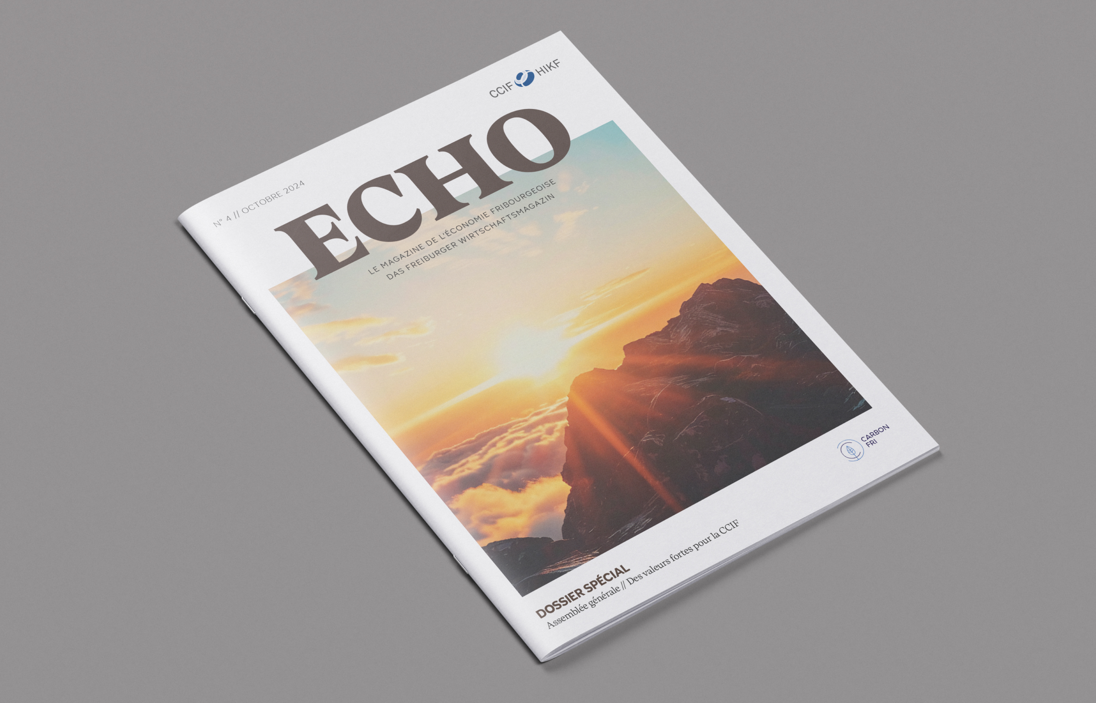 Refonte graphique de la brochure ECHO visant une présentation plus moderne, sobre et institutionnelle, avec une mise en page aérée, une palette de couleurs adoucie et des éléments graphiques plus lisibles.