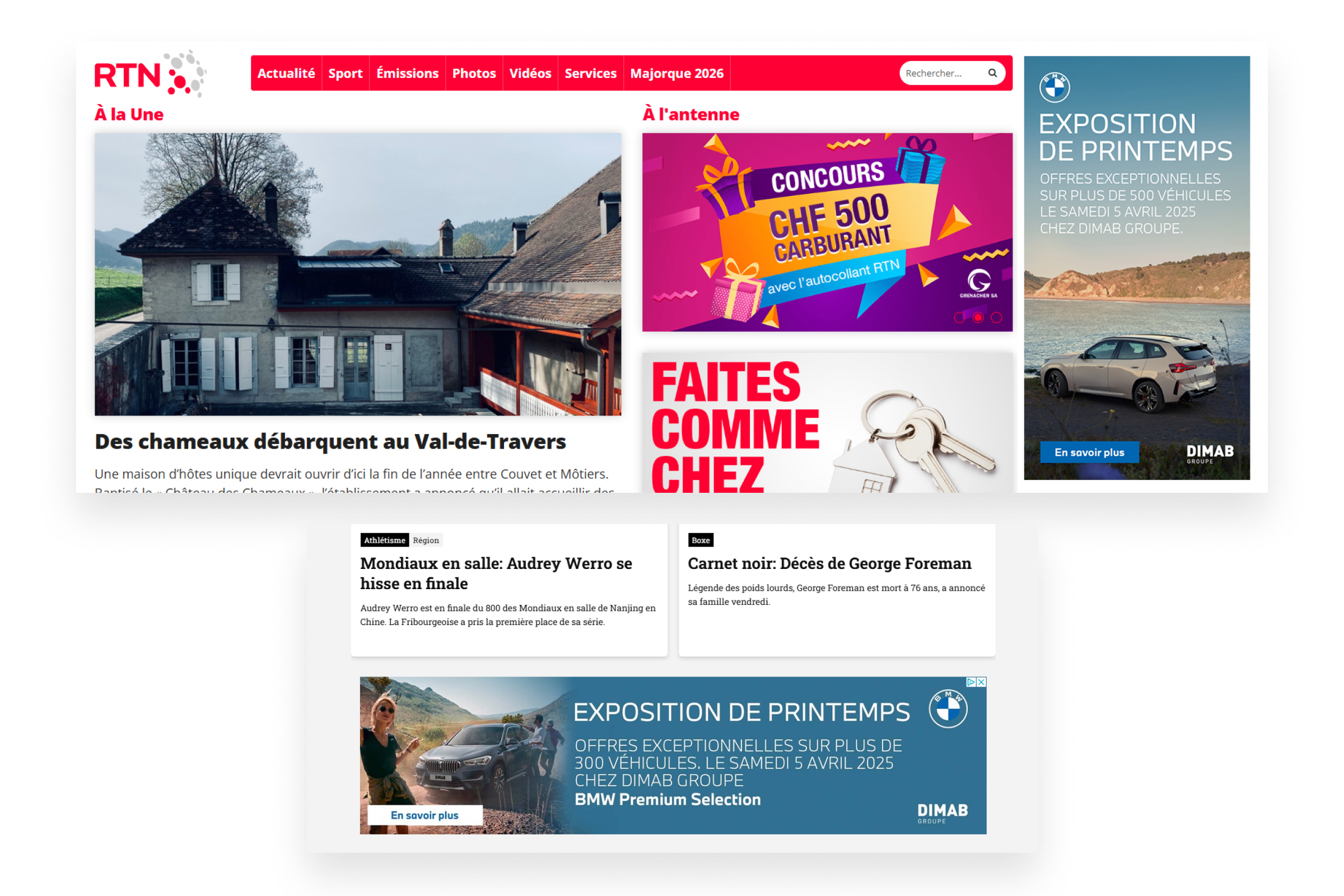 La campagne a été déclinée sur 44 formats digitaux — 28 pour BMW et 16 pour MINI — en versions statiques et animées, diffusés en français et en allemand sur plusieurs régies et plateformes web suisses.